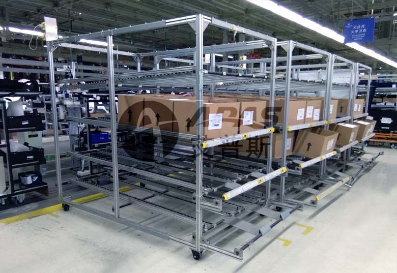 汽車生產線物料架需要根據應用需求配備多重功能,如:物料報警系統、抽拉功能等,工業鋁型材特殊的凹槽結構可以與非標件很好的配合使用,操作簡單便捷,吻合度高;